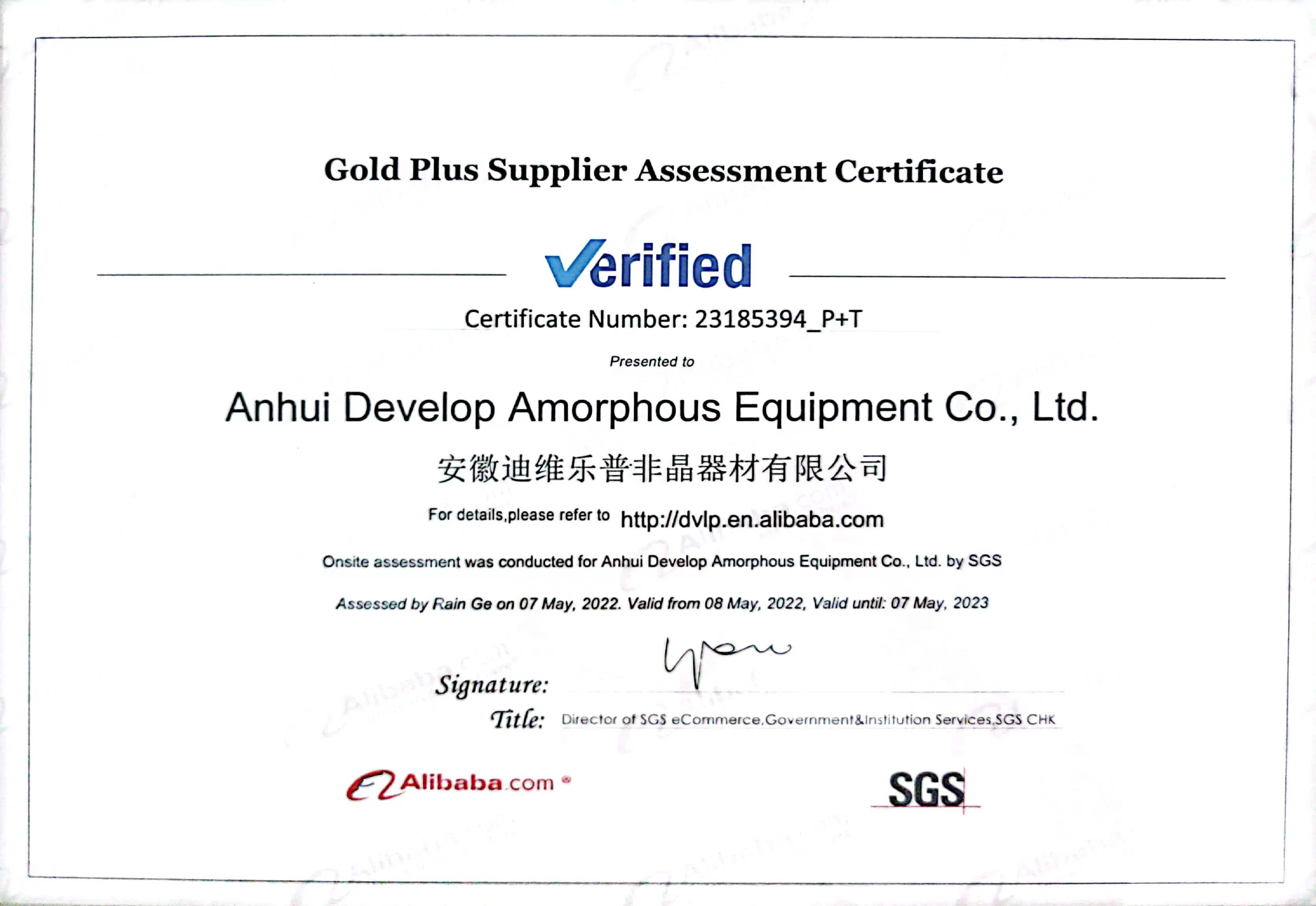 • SGS质量体系证书